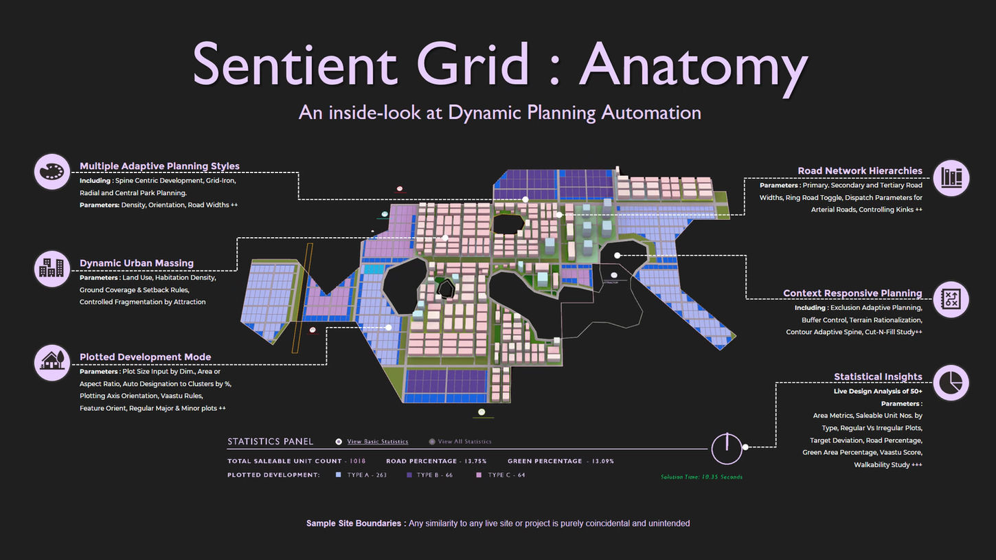 Sentient Grid reduces Master-Planning timelines from Months to Minutes, promising radical transformation in Urban Design, Real Estate and AEC.