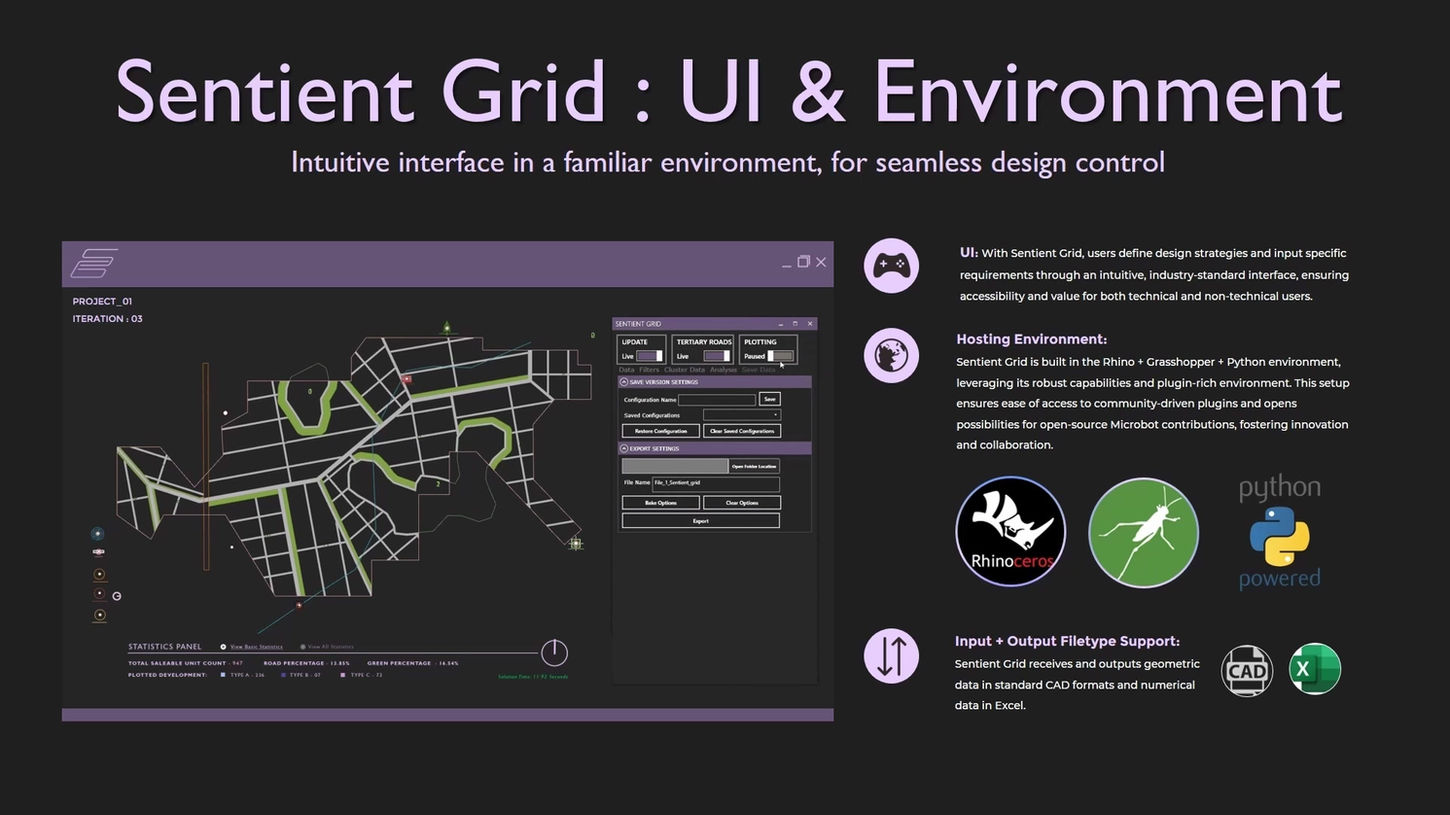 Sentient Grid is a heuristic algorithmic system designed to bring precision, flexibility, and speed to urban and architectural planning. At its core, the system ensures that every facet of its output is mathematically controlled—parametric, precise, and meticulously measured. However, what sets Sentient Grid apart is its modular, non-linear structure. The system is built around Microbots, independent strategy fragments that function autonomously yet are designed to be assembled in countless configurations. These Microbots can be linked in sequence, empowering users to tailor planning workflows to their specific needs and objectives. Whether it’s creating large-scale masterplans or refining intricate zoning strategies, users can design and execute solutions in a matter of seconds. This modularity represents a radical departure from traditional CAD workflows, combining unparalleled precision with the fluidity of a heuristic approach. Remarkably, Sentient Grid achieves all of this without relying on AI. It delivers the speed and adaptability often attributed to AI-powered visualization tools while surpassing them in accuracy, control, and the depth of its planning capabilities. Sentient Grid isn’t just an incremental improvement—it’s a paradigm shift in how we think about and execute planning. It redefines what’s possible, giving architects, urban planners, and developers a system that is as innovative as it is practical.
